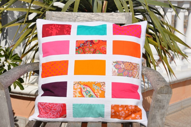 Also this weekend I was working on a birthday present (I decided to make a pillow case) as we are invited for a celebration next Saturday. It is a simple pattern with bright fabrics and I think it will match well with a white leather couch and a red carpet.