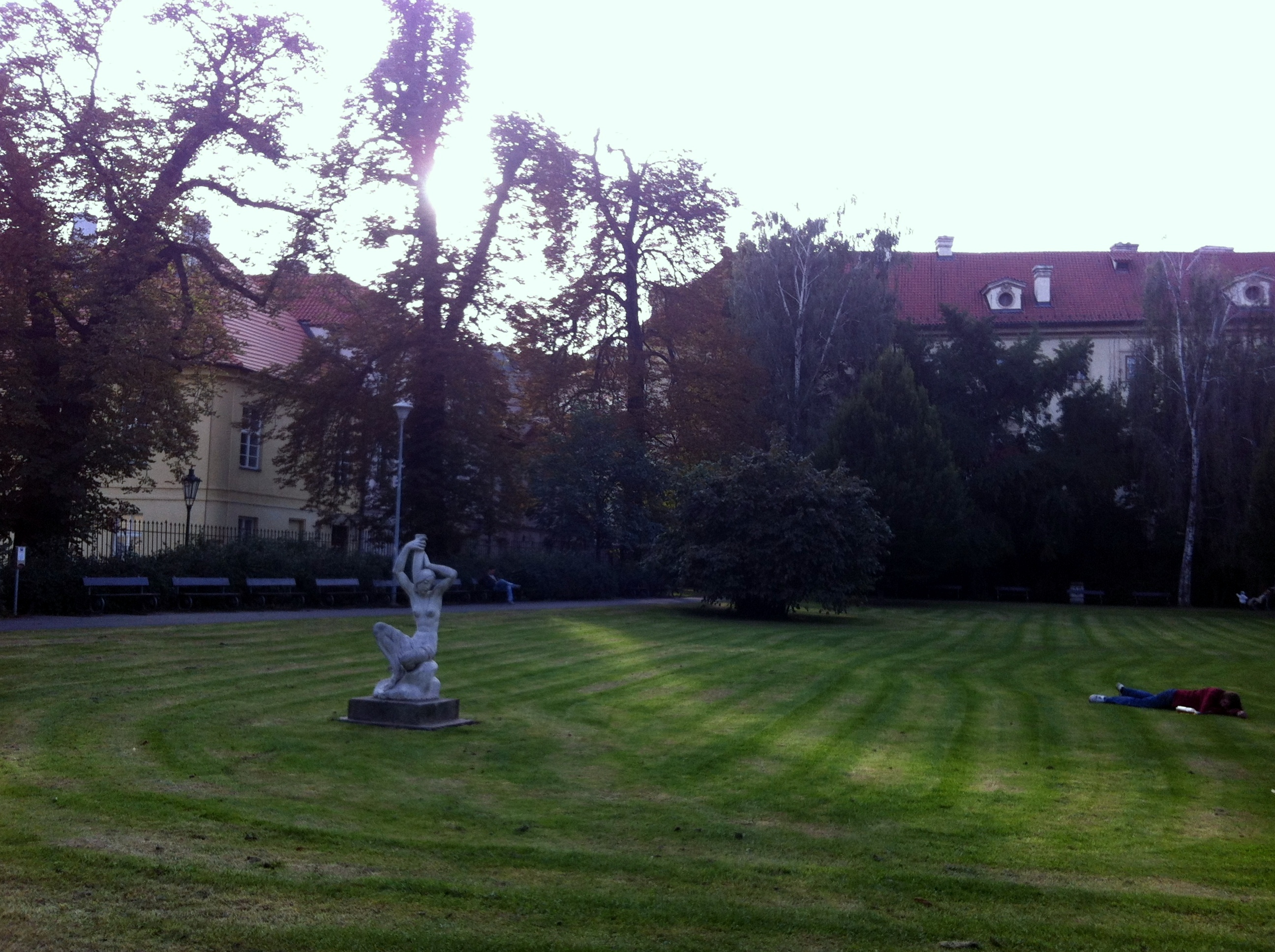 The above picture is a caption in the park Kampa, near the Moldau river. A happy guy was drinking wine and sleeping his siesta.