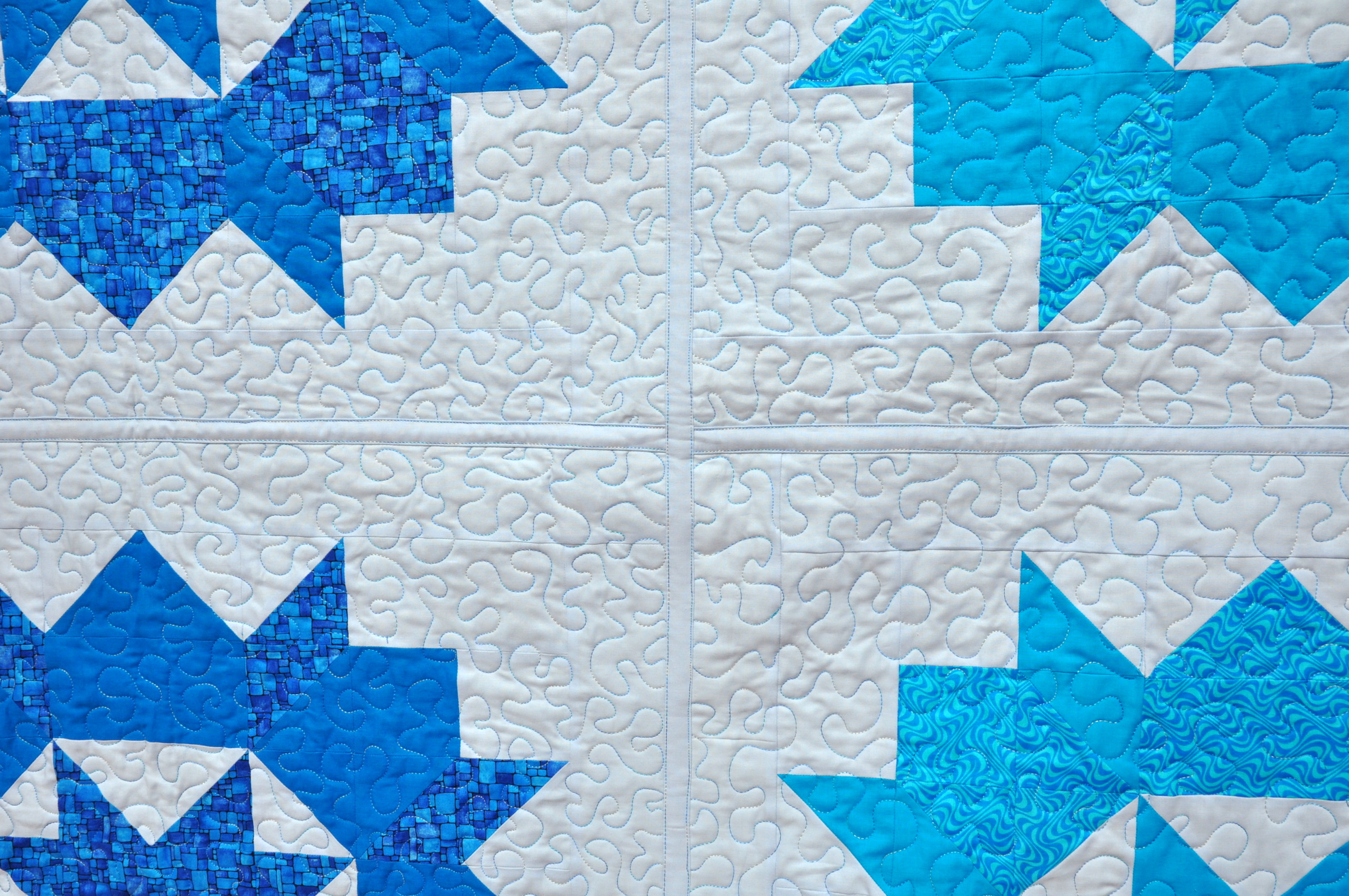 1. Really beautiful! i love white with blue 🙂 The Quilt As You Go method is great for short arm machines. Thank you for sharing. Avis x