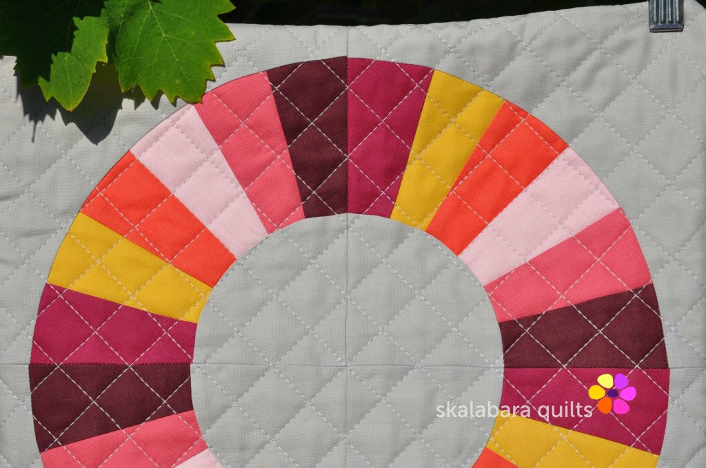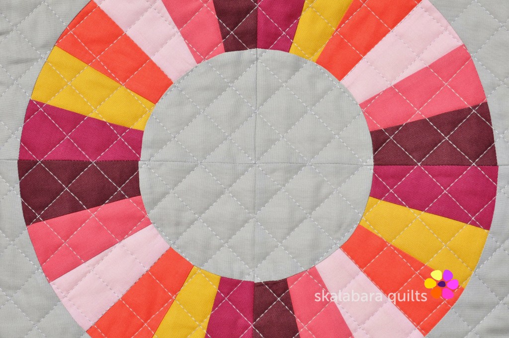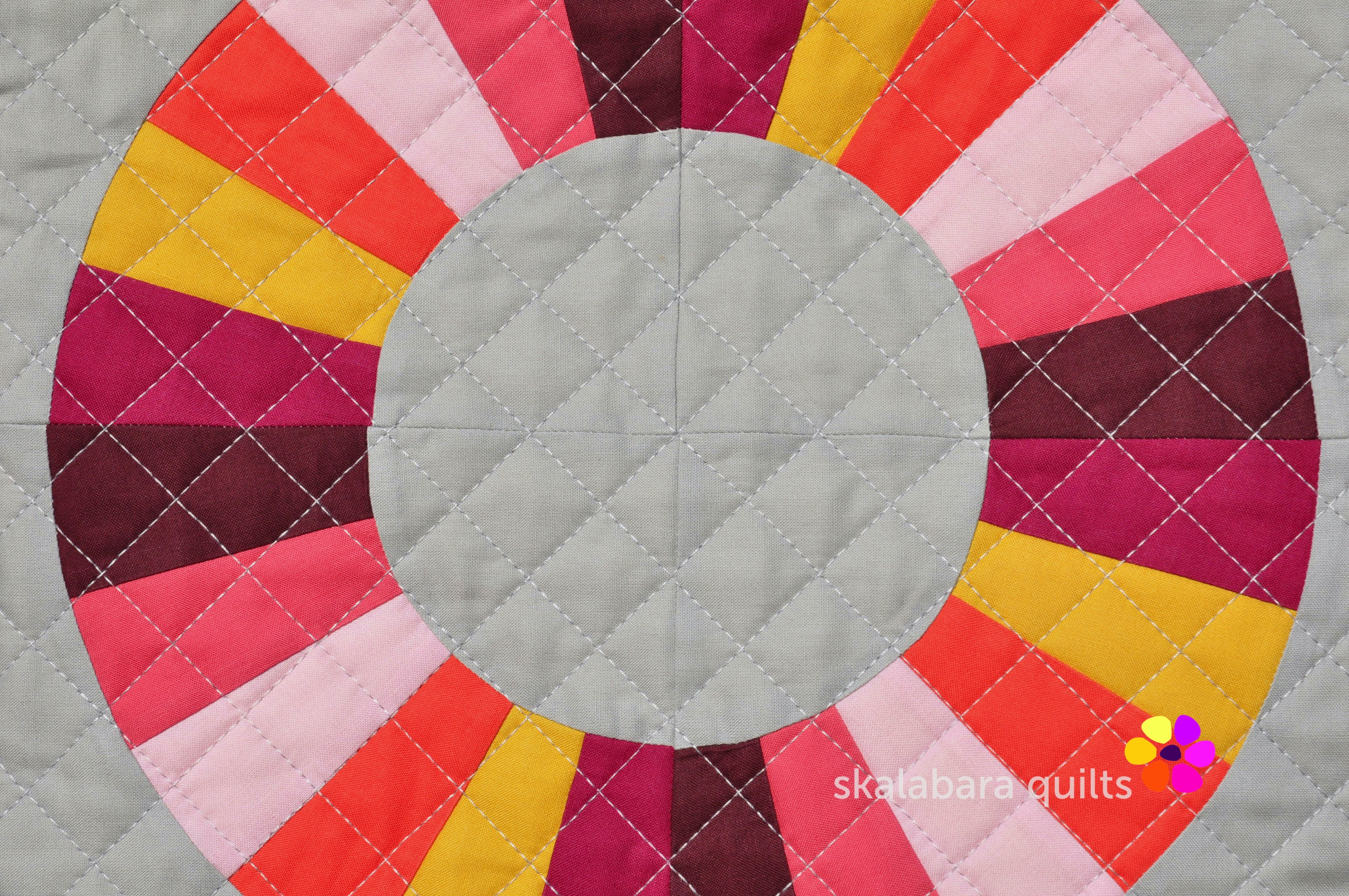 The quilt colors are made for a small princess – with all the bright pinks, purples and oranges. To finish this baby quilt I have selected a pink for the binding, Kona Solid Medium Pink.