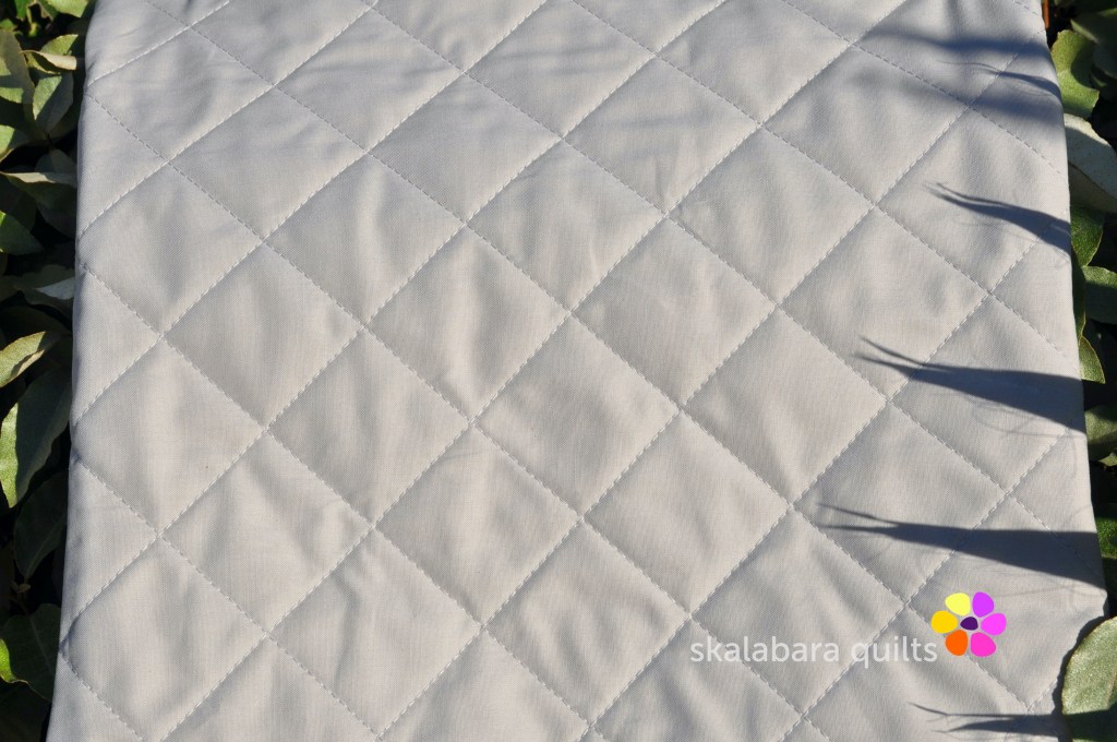 The batting is a 80/20 cotton/polyester mix, a nice and cosy medium weight batting for quilts or light quilted jackets.