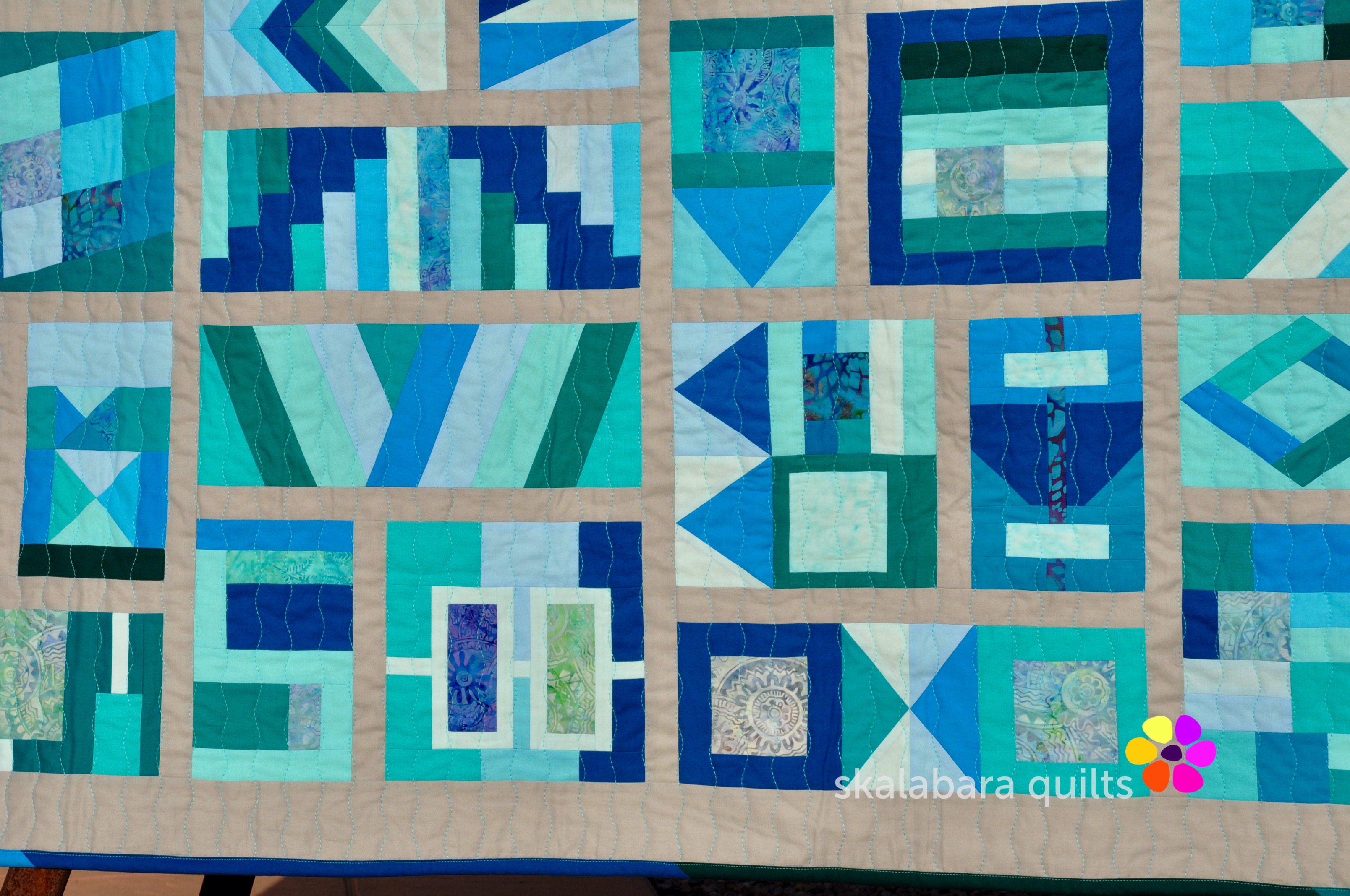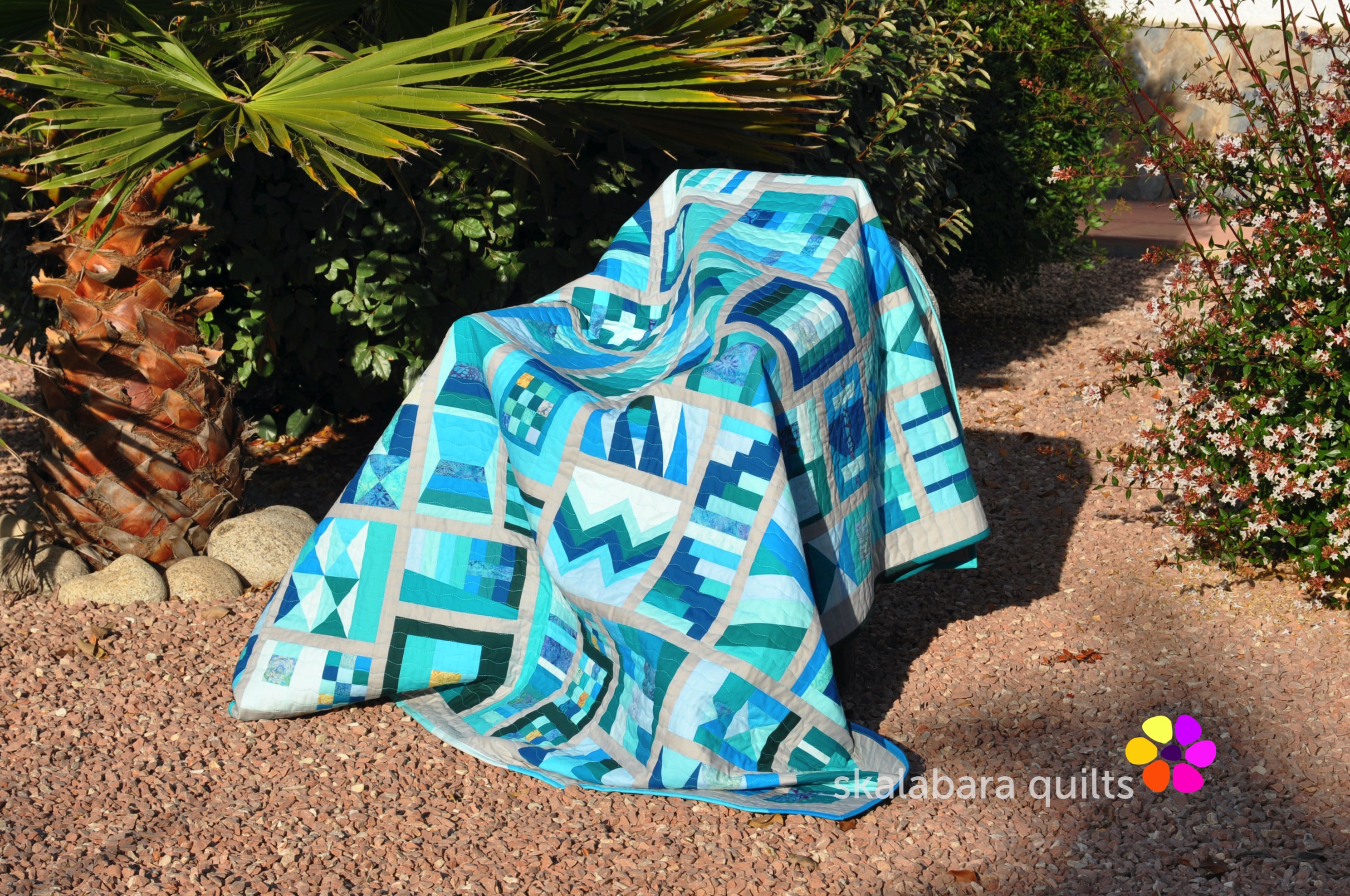 Working with Kaffe Fassett fabrics is always a pleasure. The fabric designs and patterns are so diverse, the colors vivid, but always matching. Over the years I have collected a lot of scraps from my projects. I had them always stored in a separate bags or boxes, no mixing with other fabrics or designers. It was time to use them for a quilt.