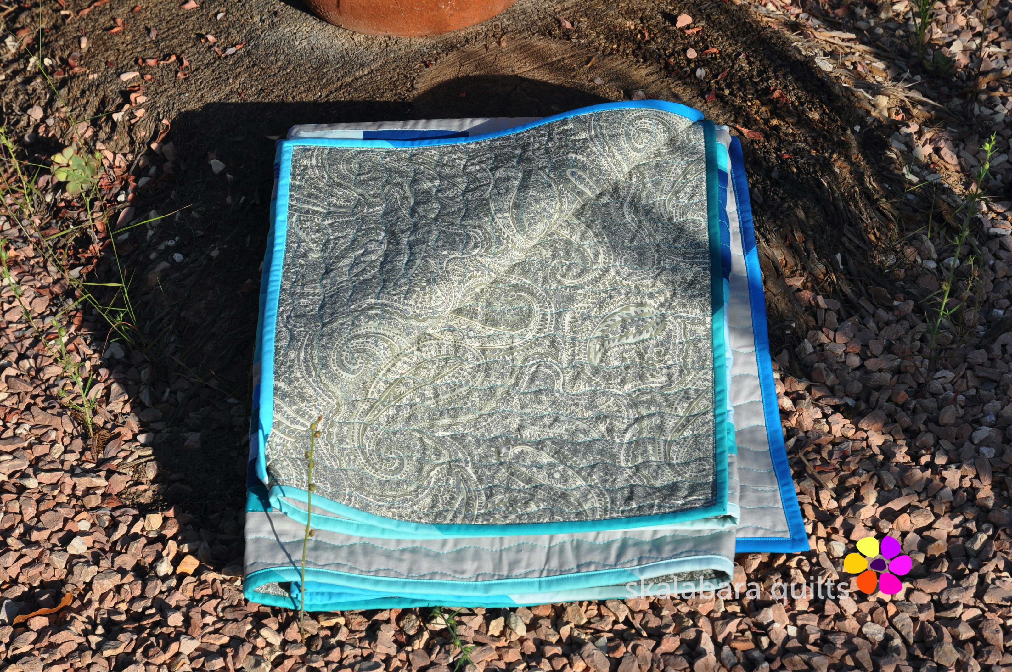 This quilt was quite a while on the waiting list to get quilted. I have worked on the quilt top last year in the summer. But somehow other projects got the preference. This quilt is a donation to the rescue dog charity that my little Dotti came from.