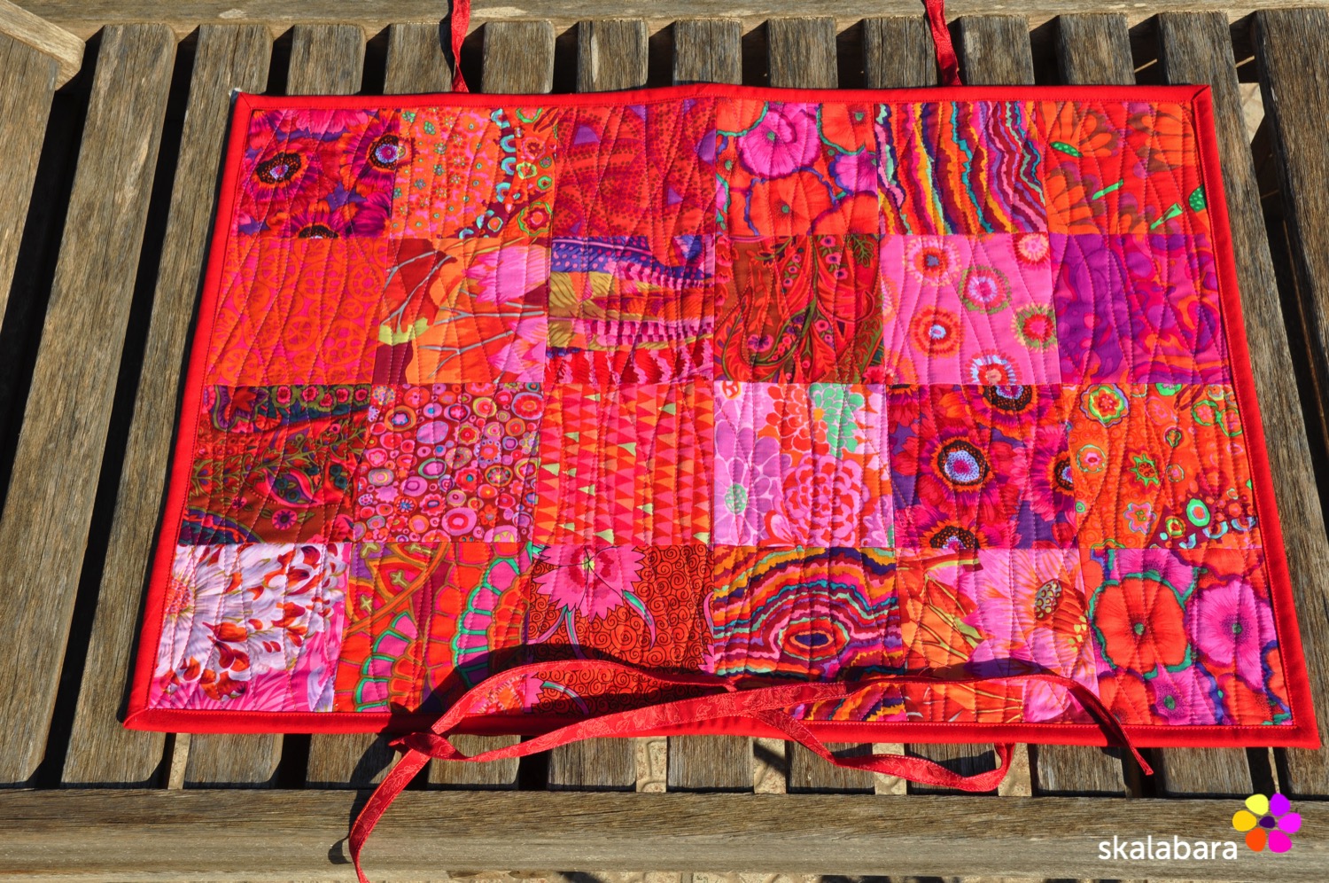 place mat size : 12″ x 18″; quilted with walking foot following the tree shapes with Gutermann Sulky