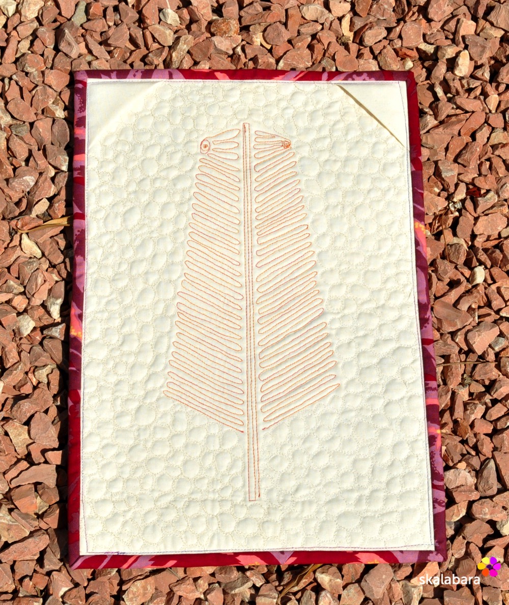 I shall keep this mini quilt, that I have free-motion quilted with a loop pattern, as a sample for patchwork and quilting classes. Over the last few months I have started preparing different patchwork blocks and quilting samples to show to my patchwork and quilting pupils.