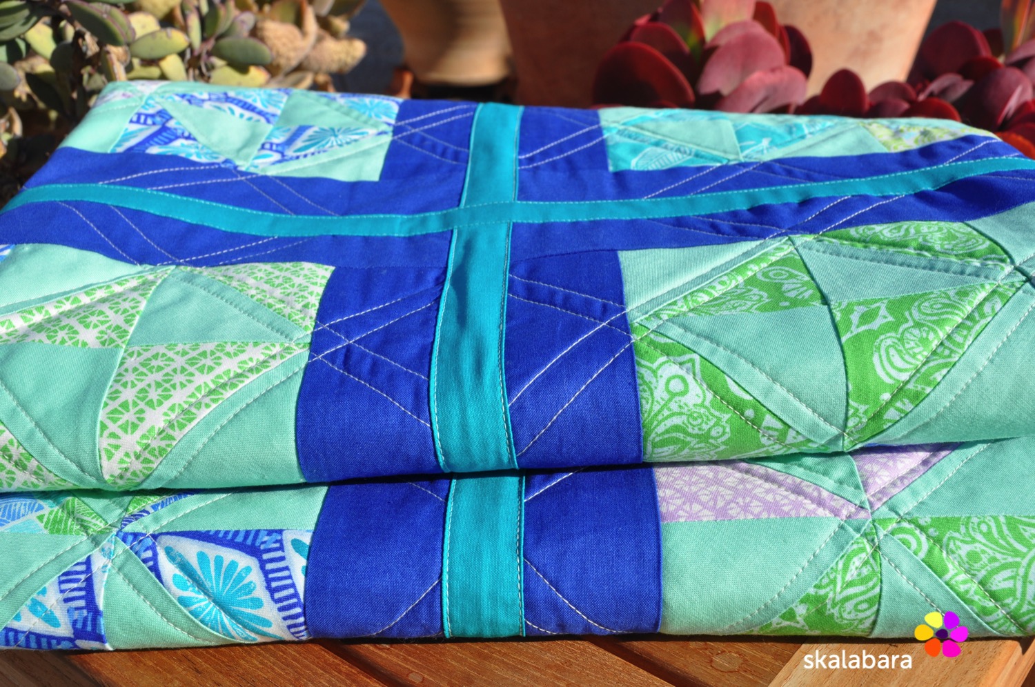 I shall keep this mini quilt, that I have free-motion quilted with a loop pattern, as a sample for patchwork and quilting classes. Over the last few months I have started preparing different patchwork blocks and quilting samples to show to my patchwork and quilting pupils.