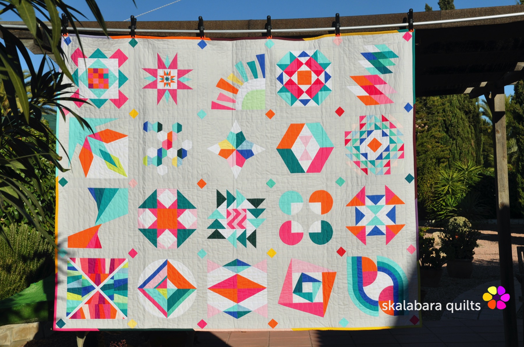 The next quilt finished : Summer Sampler 2020! After the quilting series Summer Sampler 2019, I have also made the 2020 version. But with some changes. Instead of making only 16 blocks, I have opted for a similar version of the 2019 Summer Sampler and made 20 blocks.