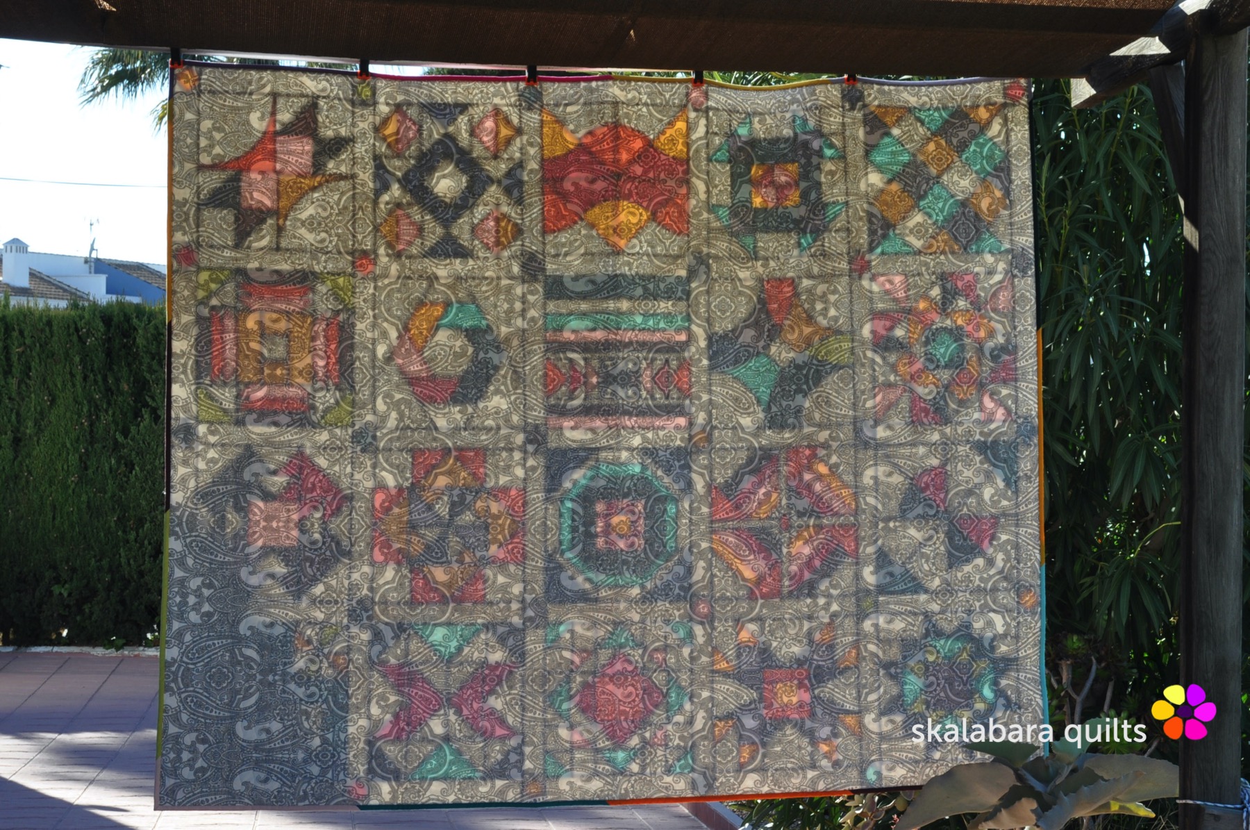 Backing is a bedding sheet from IKEA with a paisley pattern in white/grey/black colors.