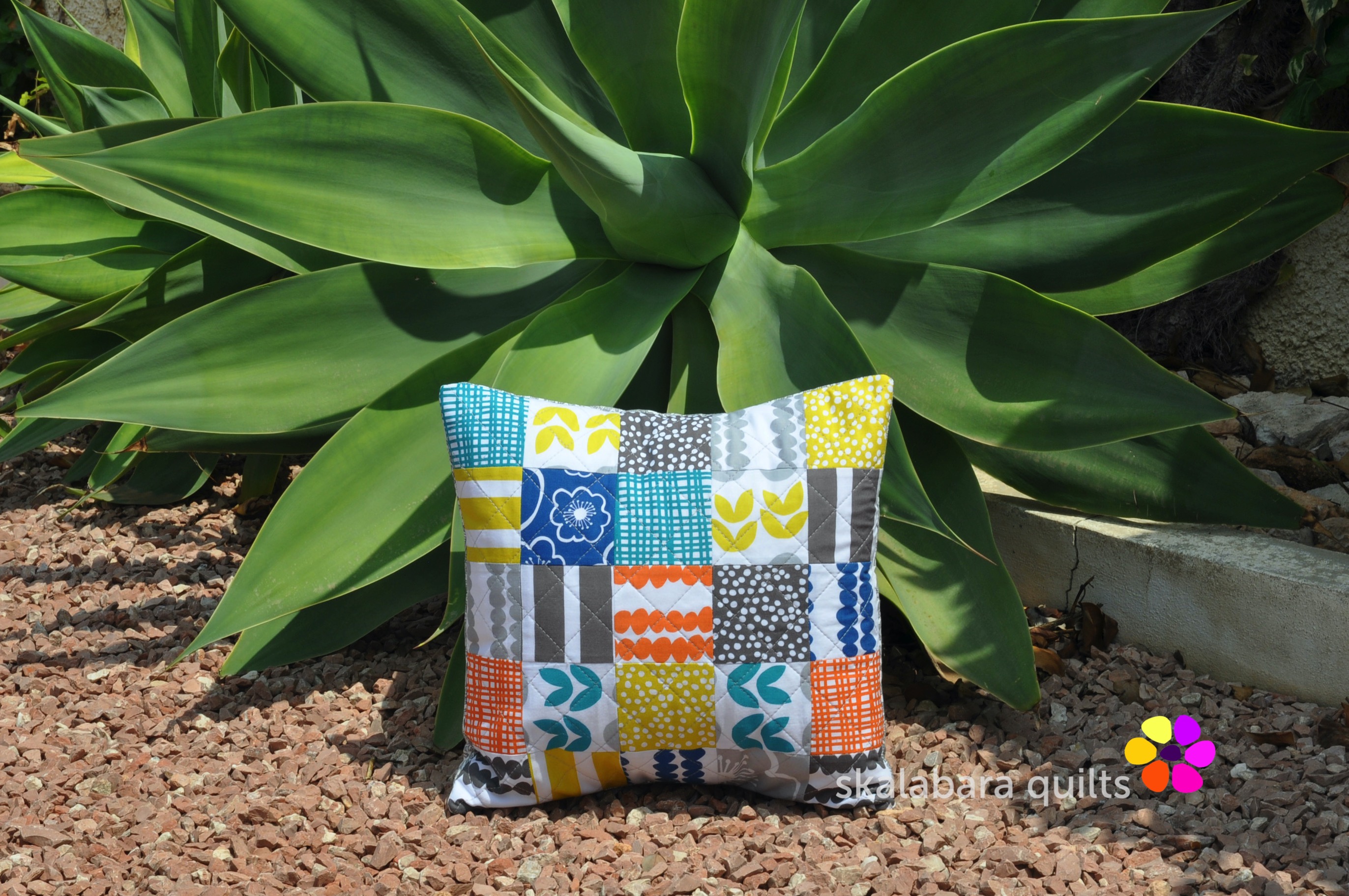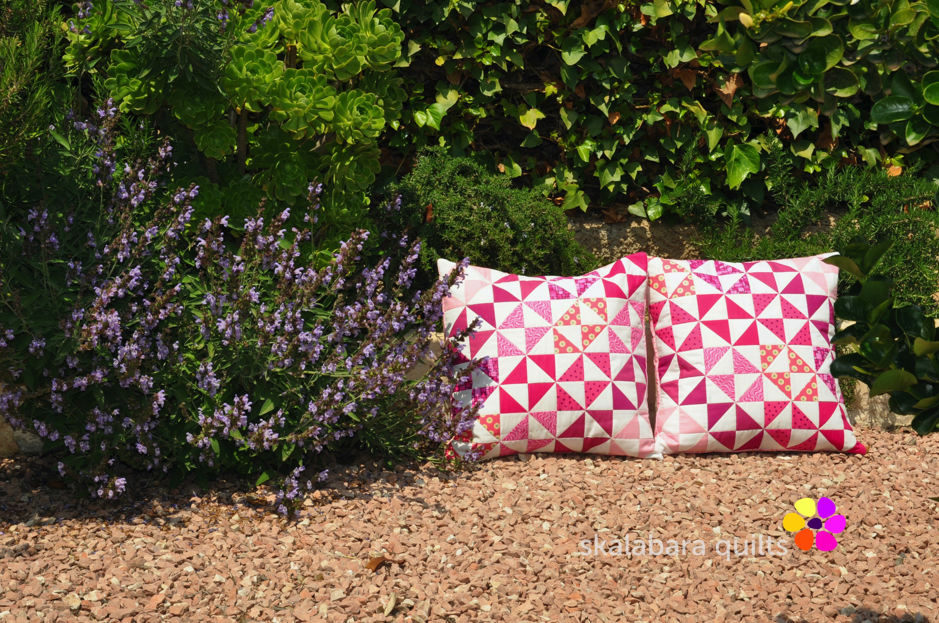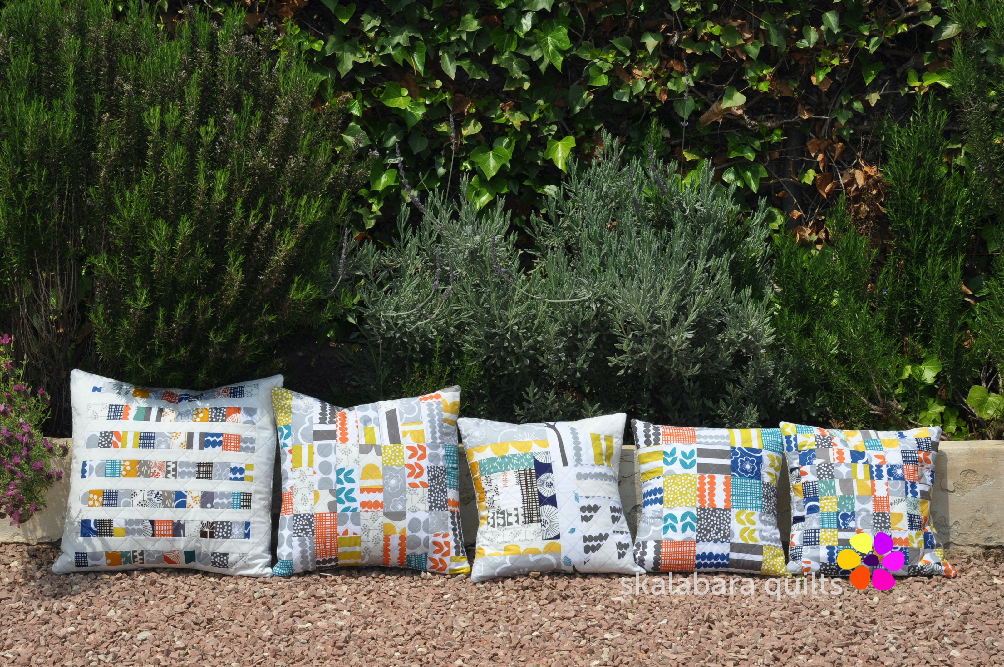 This was a fun project using all fabric leftovers. Each cushion cover has a unique design. But as all the fabrics come from the same collection, they unite the series.
