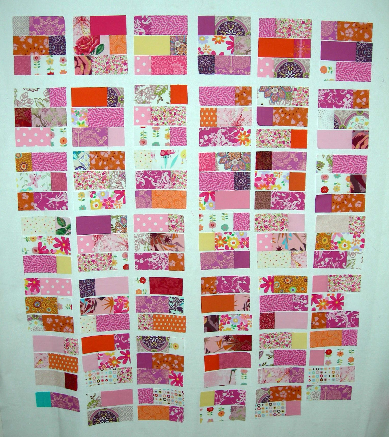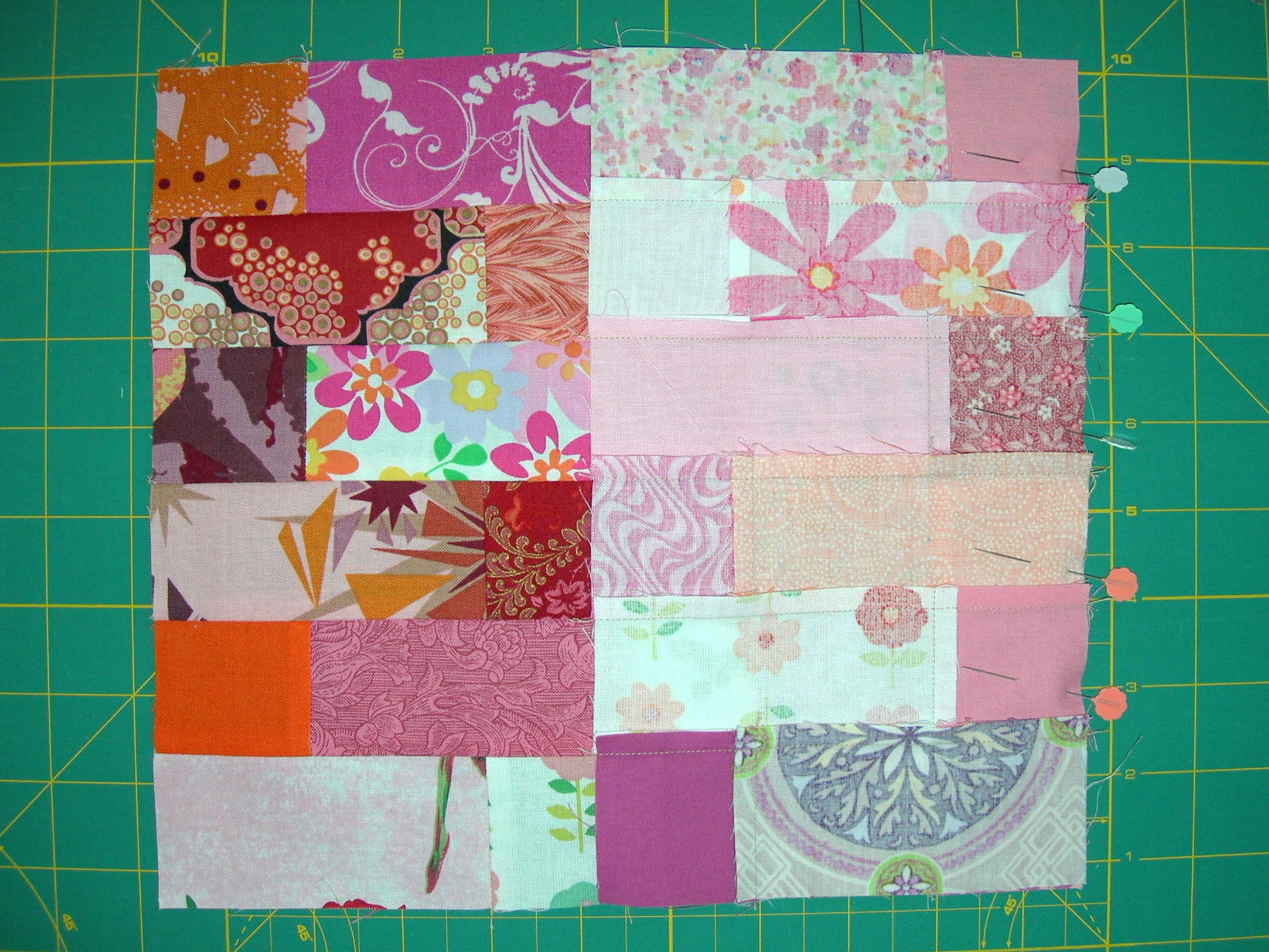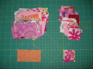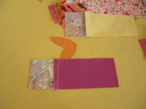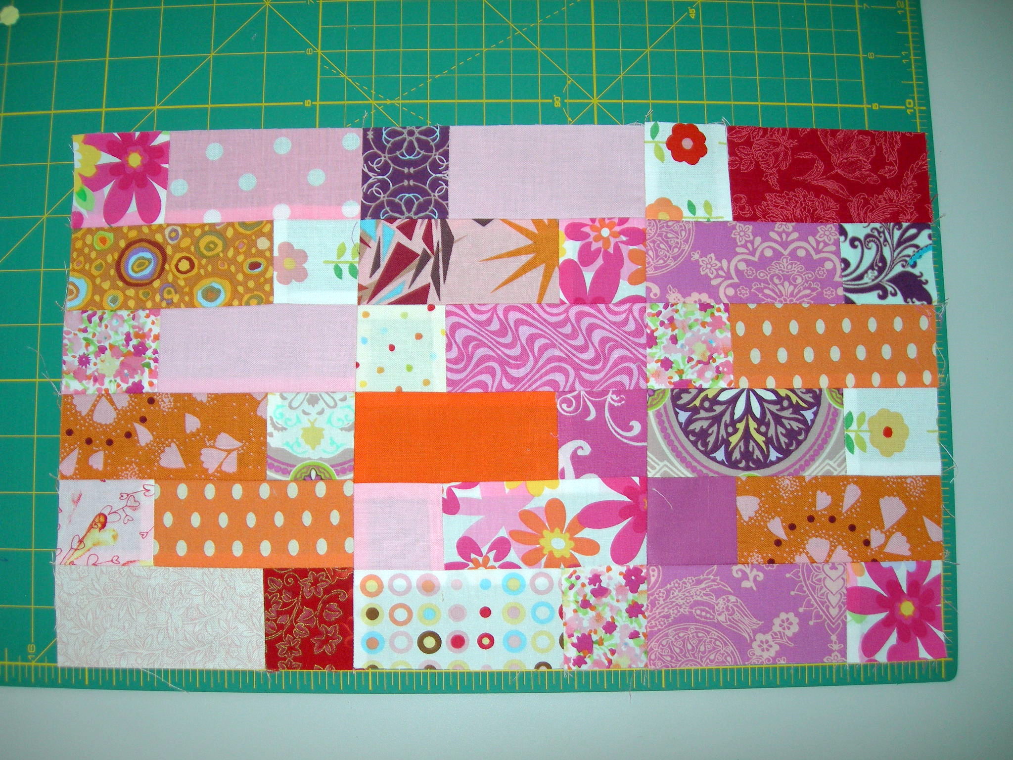 I have opted for vertical (on the chilli fabric) and horizontal (orange) lines :